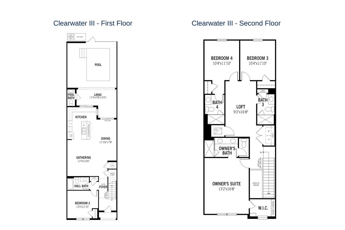 O Clearwater III oferece mais de 2.000 pés quadrados projetados para entretenimento e conforto. Com 4 quartos, 4,5 banheiros, um loft no segundo andar e uma sala iluminada pela varanda adjacente, este imóvel é ideal para quem busca sofisticação. A cozinha moderna apresenta uma ilha ampla, bancadas de granito, despensa generosa e eletrodomésticos de aço inoxidável. A suíte principal no térreo é um verdadeiro oásis, com closets espaçosos e banheiro com pias duplas. Relaxe e aproveite o clima da Flórida na piscina privativa coberta. Disponível nos estilos Coastal e Modern, o Clearwater III combina elegância e funcionalidade para uma vida incrível na Flórida.