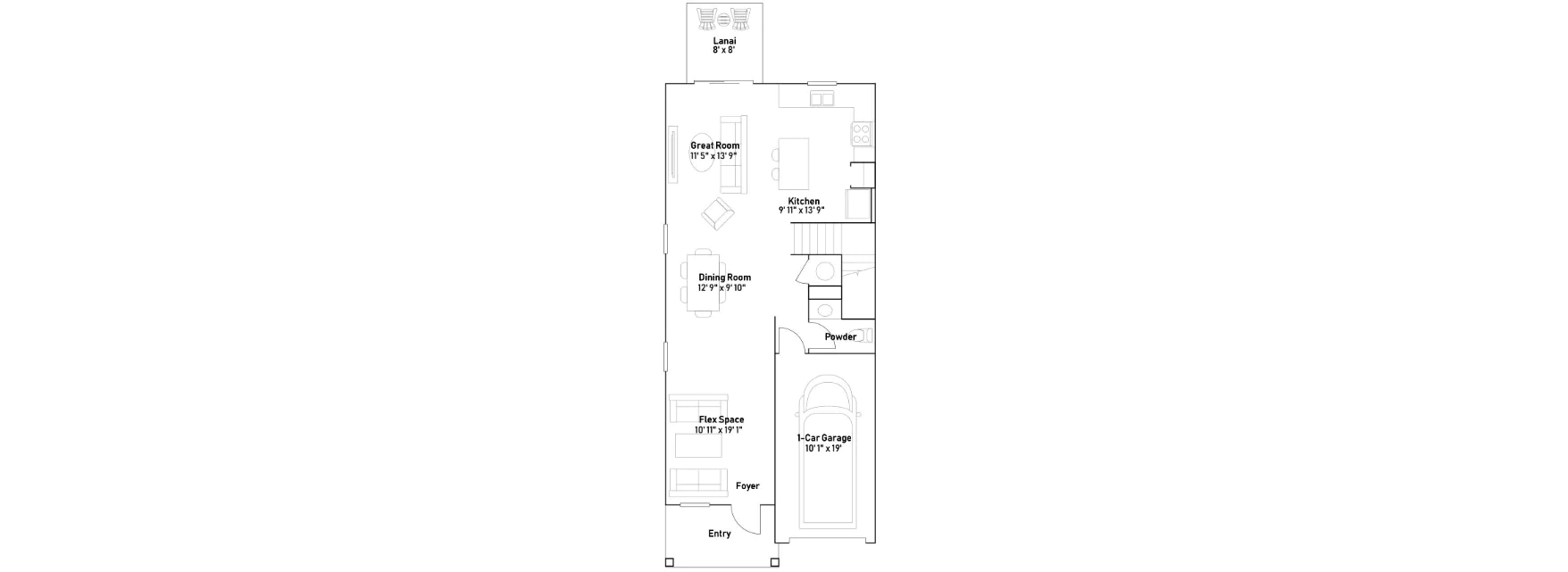Esta prática casa de dois andares abre para um aconchegante espaço flexível, com acesso integrado a uma cozinha bem equipada e a um amplo Great Room, ideal para entretenimento moderno. As portas de vidro deslizantes levam a uma agradável varanda coberta. No segundo andar, dois quartos secundários estão próximos a um banheiro completo, enquanto no final do corredor encontra-se a suíte principal, garantindo privacidade e conforto.